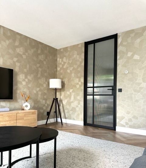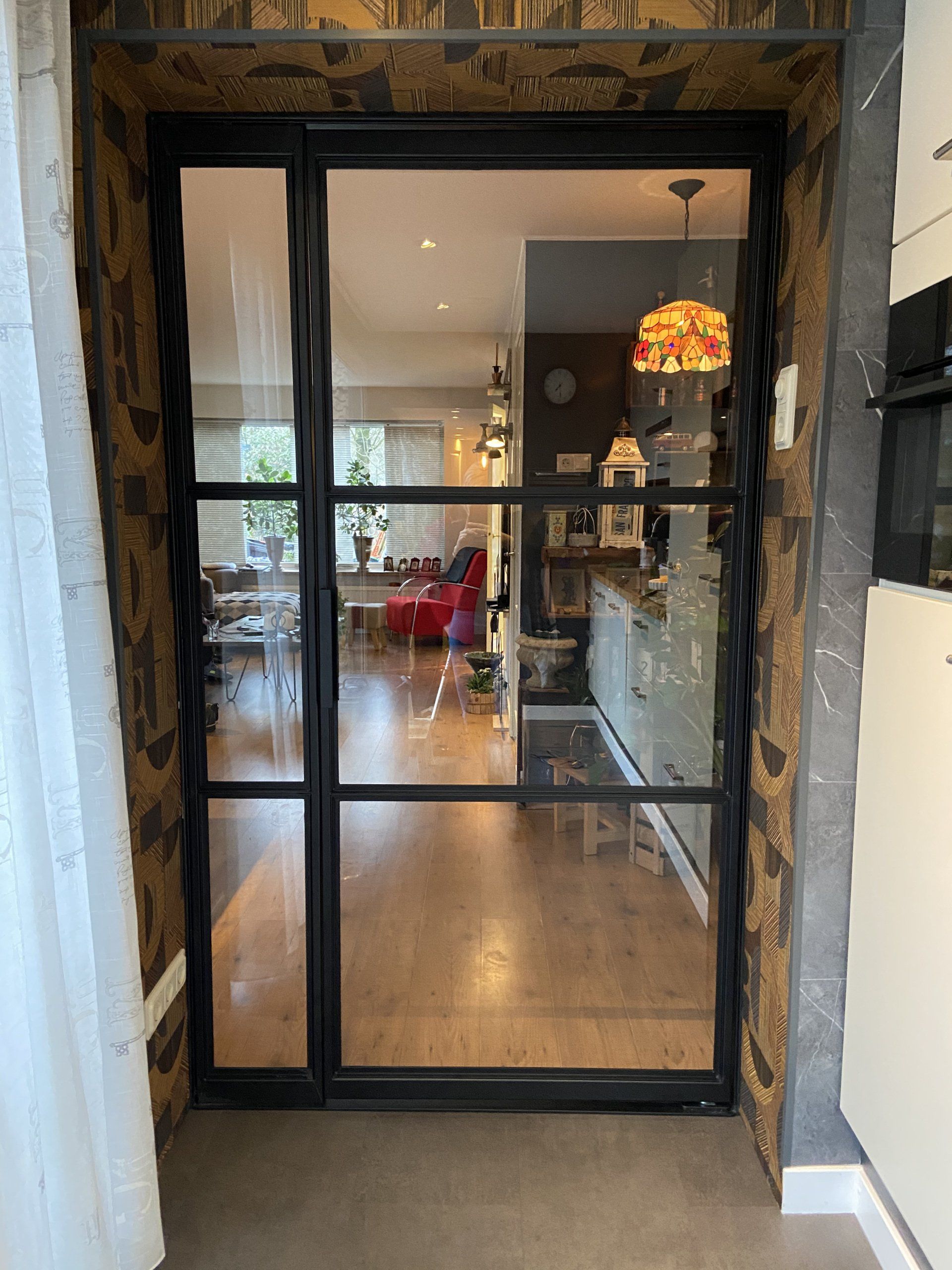 Scharnierdeur met zijlicht tussen keuken en woonkamer